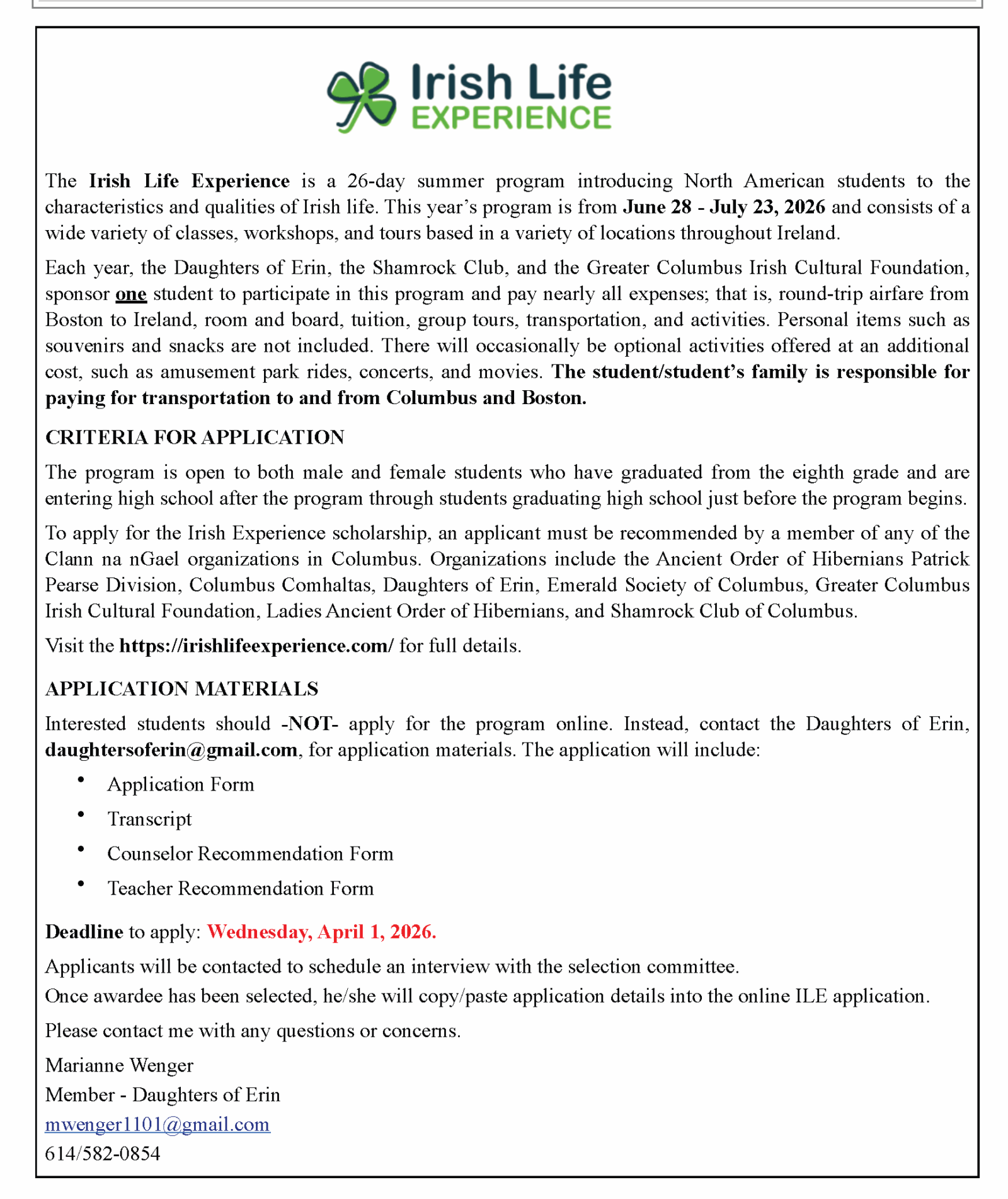 Links to Central Ohio Irish Organizations